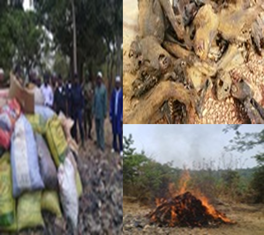 Les autorités préfectorales et régionales de Labé en collaboration avec les services de la sécurité et avec l’appui de GALF (Guinée-Application de la Loi Faunique) ont procédé le vendredi 17 avril 2015 à l’incinération de près de 2 tonnes de viande de brousse. Un signal fort des autorités guinéennes dans la lutte contre le trafic faunique.